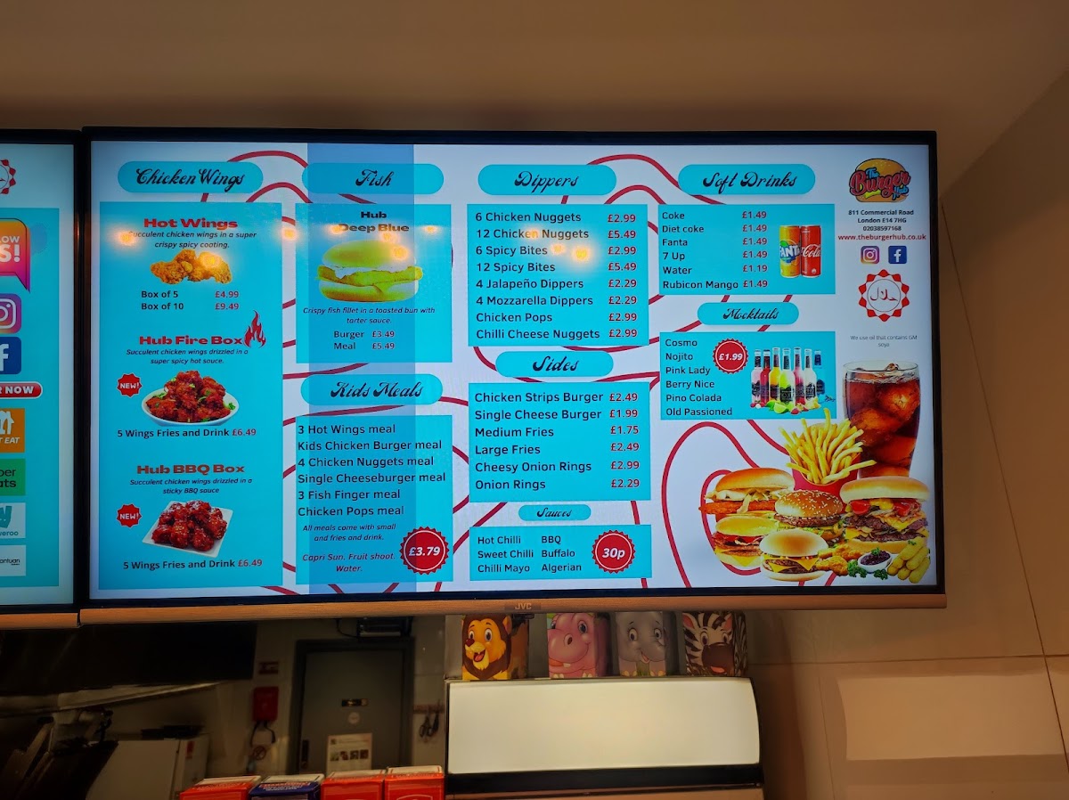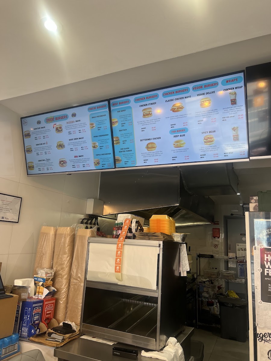 Signature Smash Burger, Buttermilk chicken Burger, Hot Wings, Chicken Popcorn, Mac & Cheese, Dips, Fries And Drinks.
